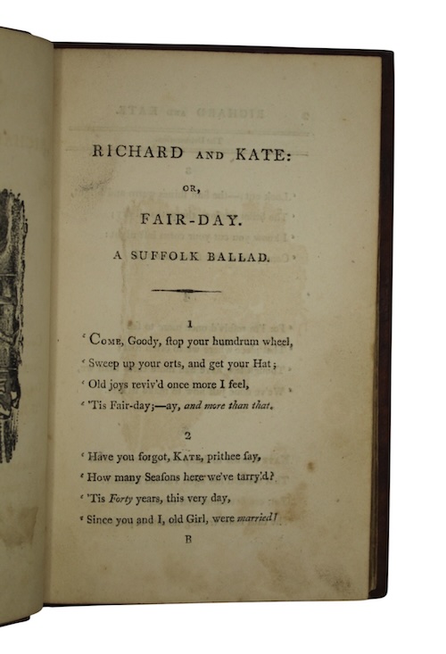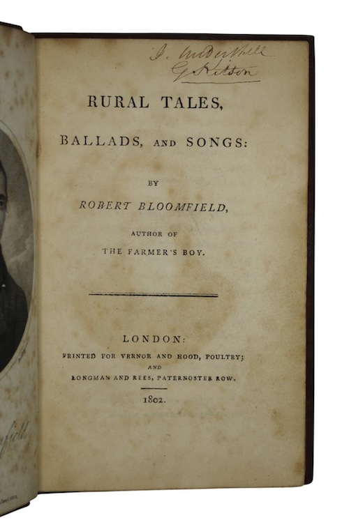 Securing both popular and critical acclaim with his first work, The Farmer's Boy (London, 1800), Suffolk poet Robert Bloomfield (1766-1823) departed from the single long poem format in this his second publication. Rural Tales explores and glorifies rural life and occupations in a series of shorter pieces.