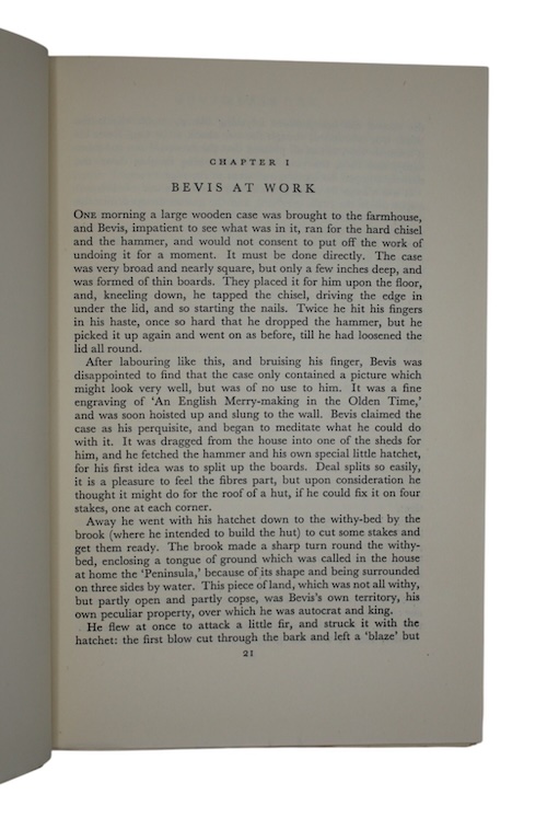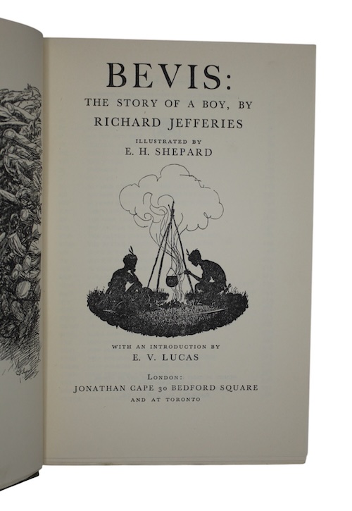 A new illustrated edition, in original dustwrapper, of Bevis, a semi-autobiographical adventure story by nature writer Richard Jefferies (1848-1887). First published in 1882 as a more grounded sequel to his earlier fantasy novel, Wood Magic: A Fable (1881), this edition is furnished with engravings by eminent book-illustrator E. H. Shephard (1879-1976), universally recognised for his work illustrating iconic children's tales such as The Wind in the Willows and Winnie the Pooh.