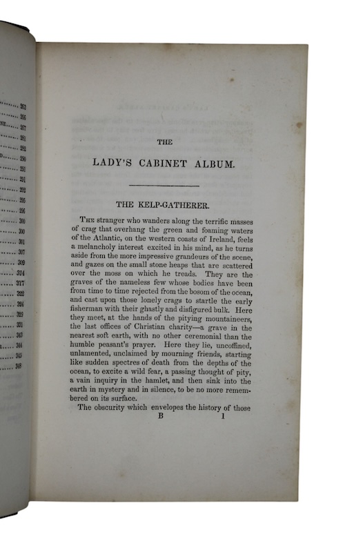 The first edition of an American anthology of literary snippets and short stories aimed at educated women, accompanied by numerous detailed engravings, including several pieces by noted American lithographer and businessman George Whitefield Hatch (1805 - 1867).